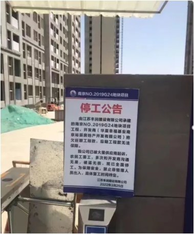 一年后,2022年3月,滨江孔雀城传出了停工消息,当时承建单位发布公告,表示华夏幸福基业南京裕辰房地产开发有限公司拖欠巨额工程款,被迫全面停工。