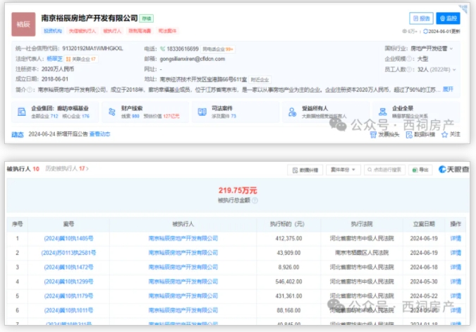 天眼查显示,南京裕辰成为失信被执行人、被执行人、限制高消,被执行金额近220万元,欠税约76万元。