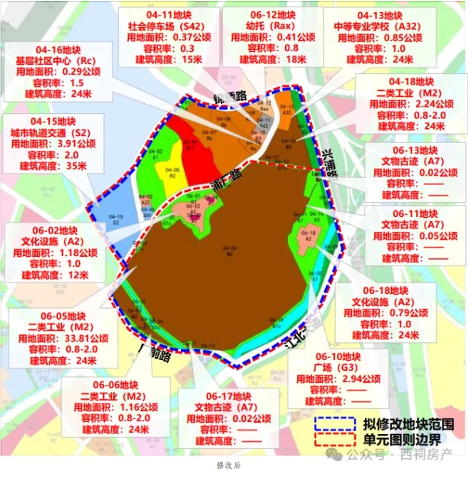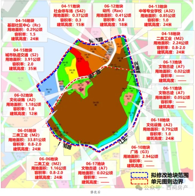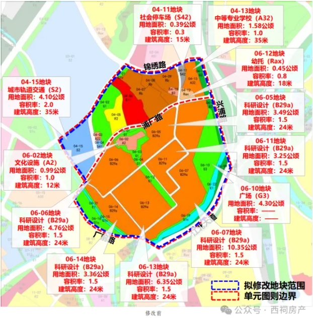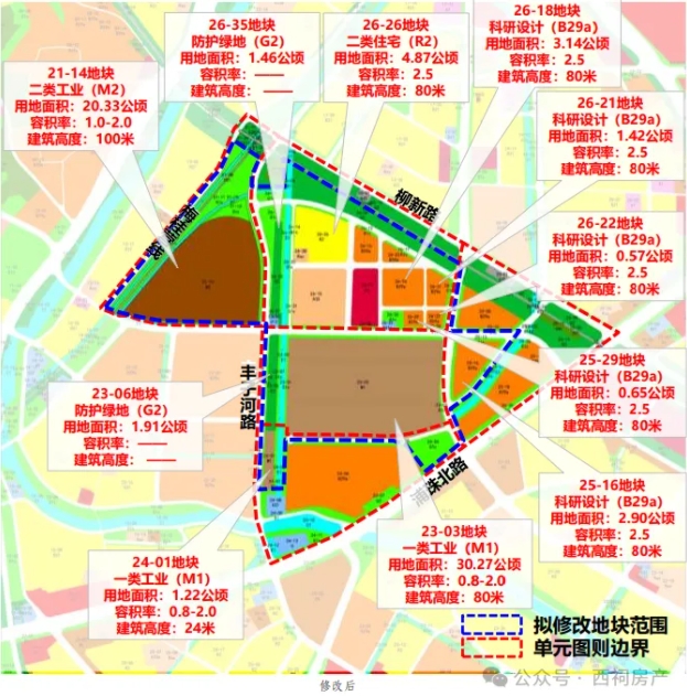 两个规划单元的主要调整内容为,将3幅住宅用地变更为工业用地;8幅科研用地变更为工业用地;7幅科研用地调整为工业用地。