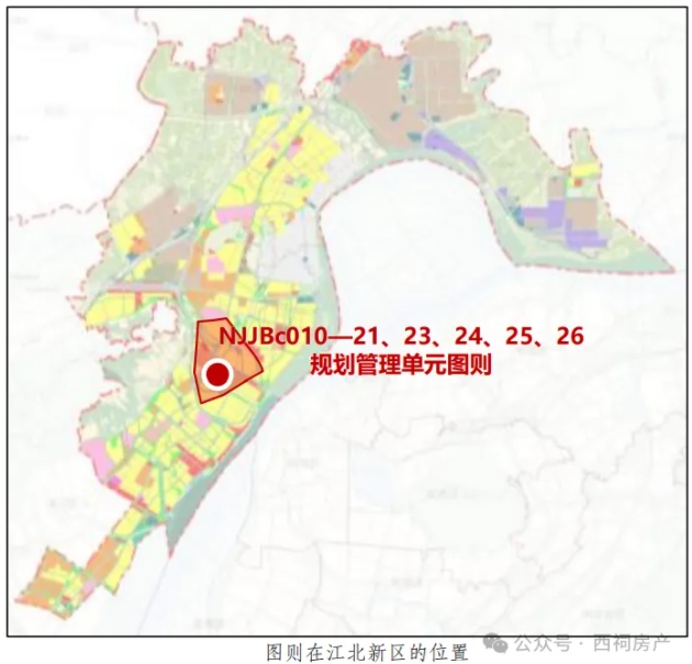 NJJBc010-21、23、24、25、26规划管理单元图则位于江北新区泰山街道,东至浦珠北路、南至朱家山河、西至梅桂营线、北至柳新路,面积约203.34公顷。