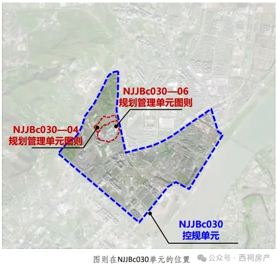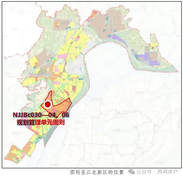 NJJBc030-04、06规划管理单元图则位于江北新区顶山街道,东至兴浦路、南至江北大道、西至厂前路、北至锦绣路,面积约77.19公顷。