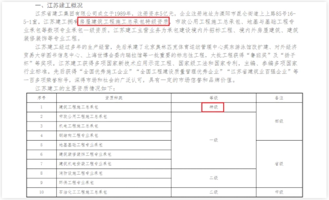 江苏省建工集团有限公司成立于1989年,注册资本5亿元,企业注册地址为溧阳市昆仑街道上上路85号16-5-1室。江苏建工拥有房屋建筑工程施工总承包特级资质,市政公用工程施工总承包、地基与基础工程专业承包等数项专业承包一级资质。江苏建工主营业务为承包建设境内外招标工程、境内外房屋建筑、建筑装修装饰等专业工程。