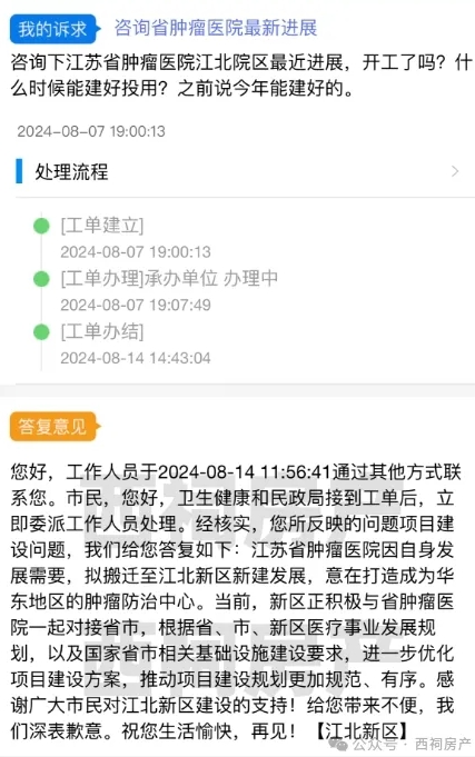 近日,有网友留言给西祠房产,咨询江苏省肿瘤医院江北新院区项目最新进展。