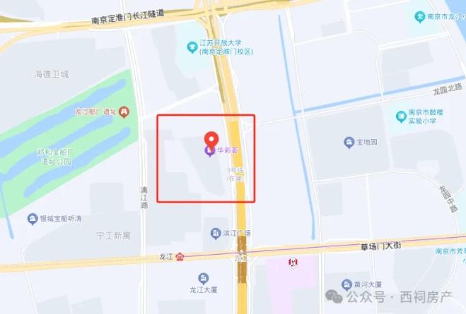 华彩荟位于南京市鼓楼区江东北路319号,靠近4号线龙江站,与省妇幼一街之隔,周边有舸舫西园、宁工新寓、金陵御沁园等小区。