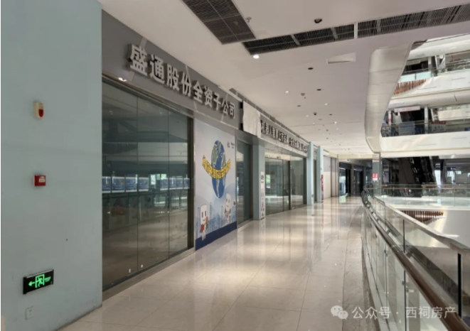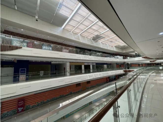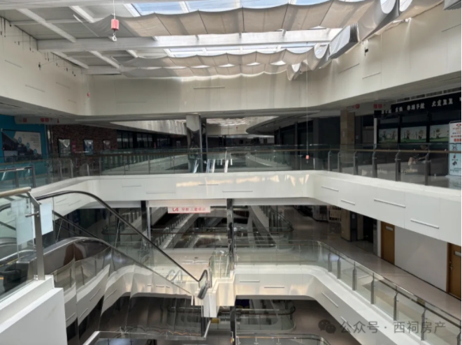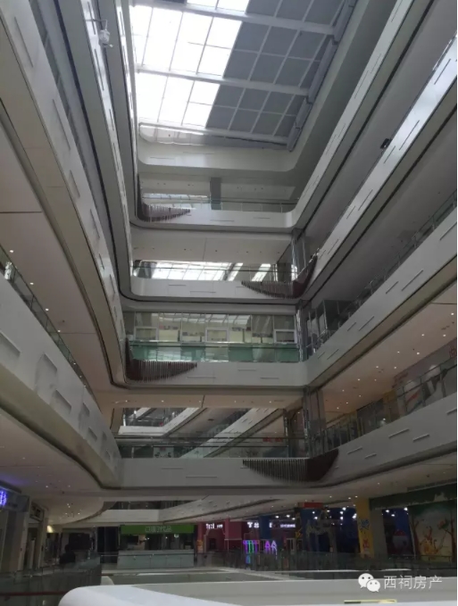 进入商场内部,更觉萧条。昏暗的商场内,大量店铺关门歇业,大门紧锁。西祠房产粗略估计,歇业的店铺占据8成左右。