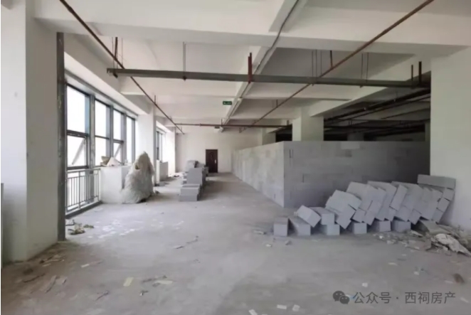 评估报告显示,2-6层无装修,有两部上下电梯,另有6部电梯目前未对2-6 层开放;每层房屋进深约44.8 米,面宽约44.8米;柱间距8米,方柱尺寸 1.2*1.2 米。2层净高4米,梁底净高3.5米;2层有部分用轻质砖分隔出 L 型使用空间;3-6层净高 2.8米,梁底净高2.3米,消防管道处净高约2.2 米。
