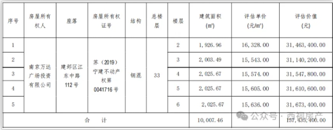 本次遭拍卖的办公楼位于建邺区江东中路112号办公楼2-6层,面积约10007.46㎡。