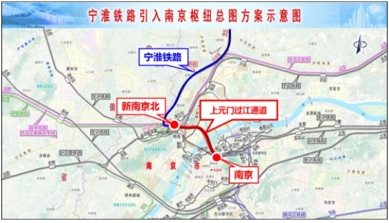 上元门过江通道是连接南京北站与南京站的重要通道,未来,北沿江高铁、宁淮高铁都可经此从江北新区进入江南主城。过江通道以单洞双线隧道形式穿越长江,引入南京站沪宁城际场,新建正线长约20.4km,其中隧道长约14km。