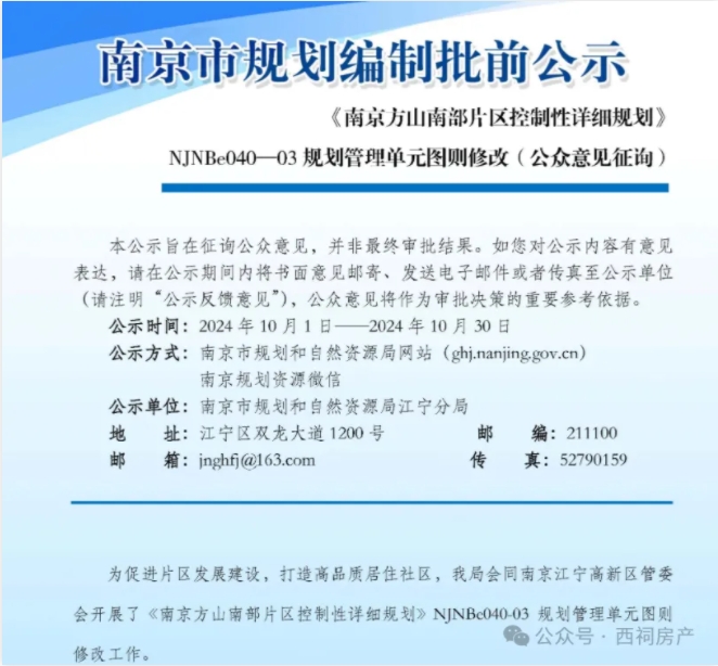 近期,《南京方山南部片区控制性详细规划》NJNBe040-03规划管理单元图则修改(公众意见征询)出炉, 目标直指“促进片区发展建设,打造高品质居住社区”!