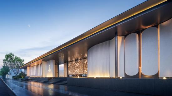 约52米宽彰显高门大院庄重,又不失灵动活力。设计上结合巴西进口独一无二的潘多拉透光奢石,阳光下熠熠生辉,透露精致奢华的气派。