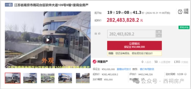 雨花客厅E-PARK9号楼拍卖时间为2024年10月31日上午11时至2024年11月1日上午11时止,截至目前,尚无人报名。