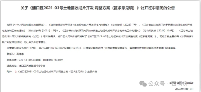 10月12日,《浦口区2021-03号土地征收成片开发调整方案 》发布,涉及南京百年大厂中车浦镇永宁街道厂区的建设规模与选址!