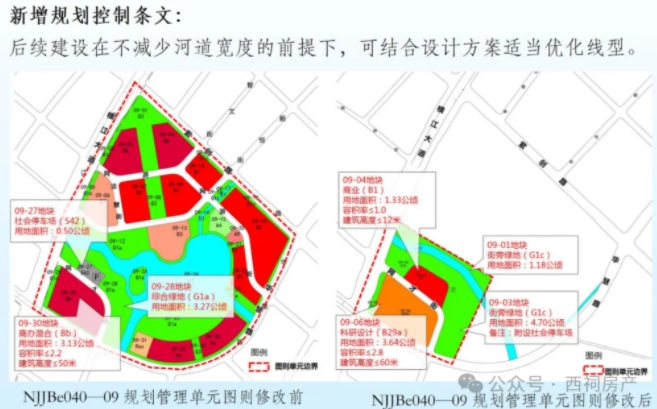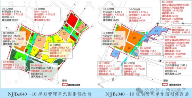 主要指标变化:修改后09-06、10-02、10-04、10-08、10-13地块为科研设计用地(B29a),容积率≤2.8、高度≤60米;09-04地块为商业用地(B1)容积率≤1.0建筑高度≤12米。