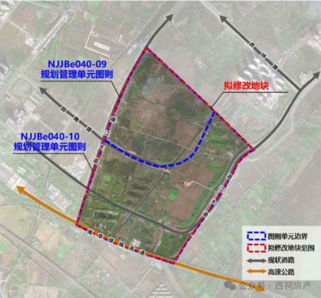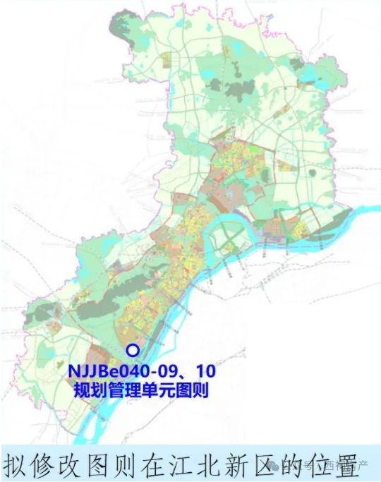 NJJBe040-09、10规划管理单元图则位于江北新区南部,东至滨江大道、西至横江大道、南至绕城高速、北至紫创路,用地面积约172.79公顷。