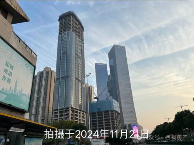 2016年,世茂以总价88亿元拿下该项目,问鼎当年南京总价“地王”。项目总体量近77万方,包含了建筑面积约12万方国际购物中心+3栋高约150米天际住宅+国际酒店+摩天写字楼+酒店服务式公寓等多重业态。2022年初,项目传出了停工的消息。而后,世茂天誉住宅延期数个月迎来交付,项目的公寓部分比住宅先入市,但至今仍未完工。>>>复工!盘活资金!南京两大地标综合体迎转机!开发商已官宣退市…