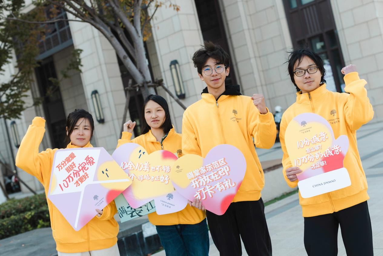 金茂南京集结数百位「棠果」以纯公益的方式花式撒「棠」,一夜派赠10万份「棠」心暖礼,包括潮流卫衣、暖冬手套、定制通勤袋、餐具等各种金茂温馨定制的礼品。路人围观、排队、领礼品,让感恩节的暖意从金茂走向了城市人的心里。
