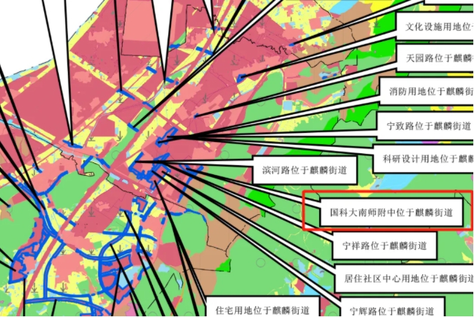 其实,早在2022年度江宁区预支空间规模指标落地上图方案规划图中就已经出现:国科大南师附中位于麒麟街道。官方微信号智汇麒麟也曾发文提到:推动国科大南京附属学校(南师附中麒麟校区)落地建设。