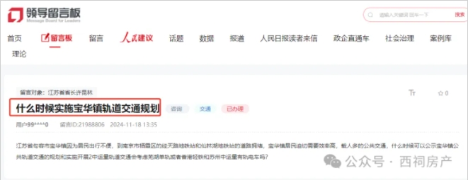 近日,有网友在人民网领导留言板上询问:什么时候实施宝华镇轨道交通规划?这位网友表示:“句容市宝华镇因为居民出行不便,到南京市栖霞区的经天路地铁站和仙林湖地铁站的道路拥堵,宝华镇居民迫切需要效率高,载人多的公共交通,什么时候可以公示宝华镇公共轨道交通的规划和实施开展中运量轨道交通,会考虑芜湖单轨或者香港轻铁和苏州中运量有轨电车吗?”