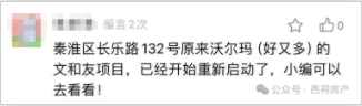 近日,有网友向西祠房产爆料:“秦淮区长乐路132号原来沃尔玛(好又多)的文和友项目,已经开始重新启动了。”