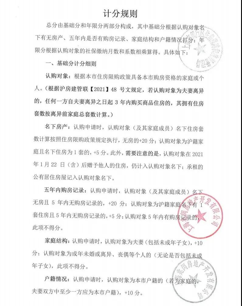 购房者在认购时,需要按照“计分制”规则,自行申报、承诺家庭、户籍、拥有的住房状况、5年内在沪购房记录以及在沪缴纳社保五大因素。