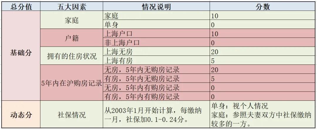 如果购房者全部满足四大因素,也就是本市户籍、家庭、无房、5年内无交易,那么最高可以得60分。而在沪缴纳社保则从2003年1月开始计算,每缴纳一个月社保加0.1分。