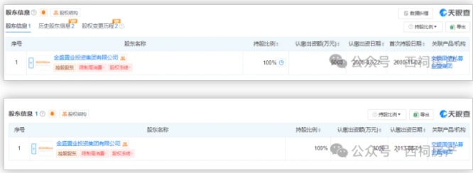 天眼查显示,南京市太平商场有限公司、南京太平购物中心有限责任公司均由金盛置业投资集团有限公司控股100%。