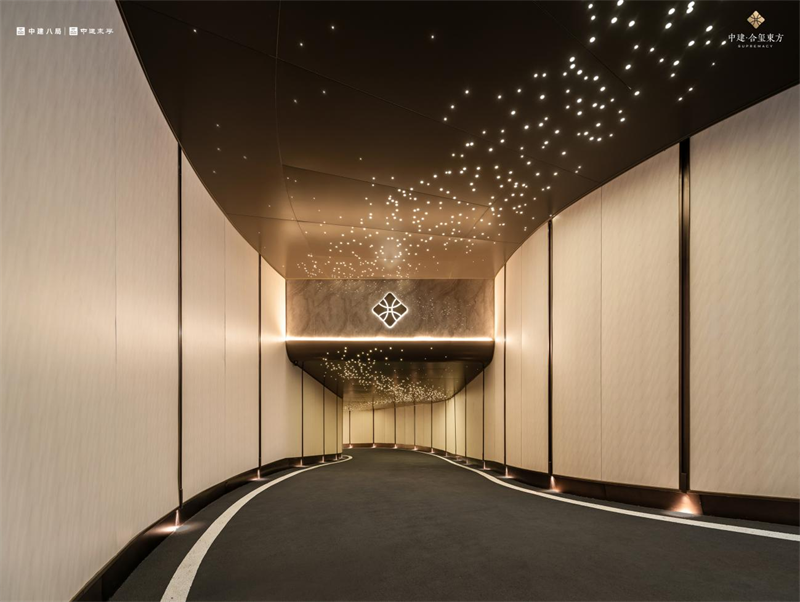 坡道、地下大堂前的泛大堂采用星空顶吊顶,流光溢彩。