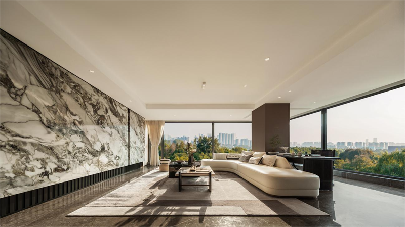 进门时的“女王玄关”,除了满满的仪式感,还巧妙遮挡了视线,保证了各个区域的私密性。270°视角的环幕端厅,视野空前阔绰,待客更大气!