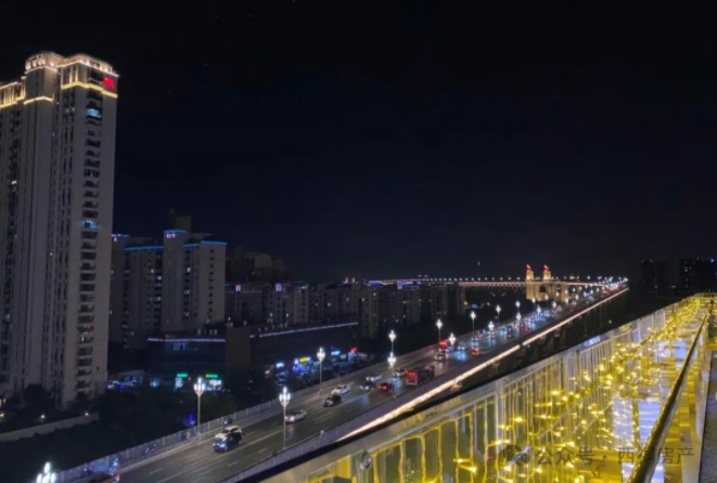 当时,桥北万象汇以顶楼的屋顶花园出名,在屋顶花园,可以遛娃、拍照、吃饭,打卡长江大桥夜景。