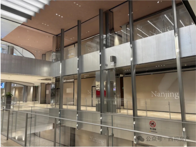 进入桥北万象汇商场内部,整个商场十分冷清,空调未开,90%以上店铺已关门,围挡上写着“Nanjing”,已看不出昔日店铺的影子。