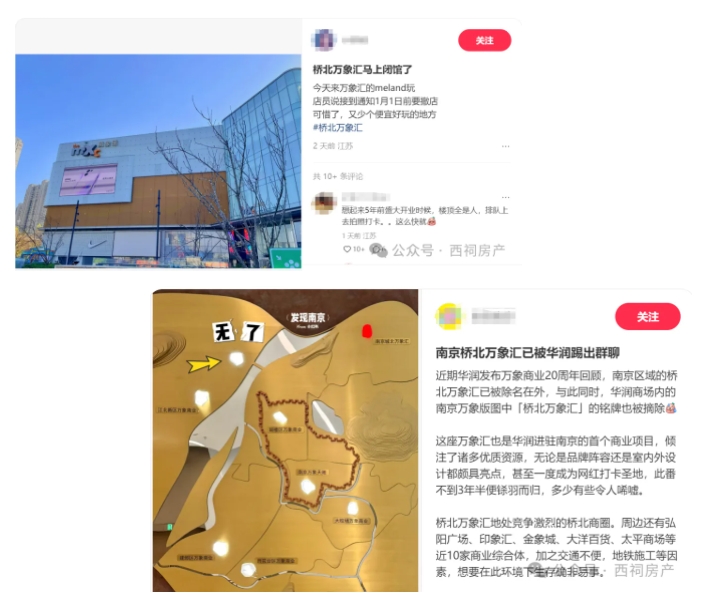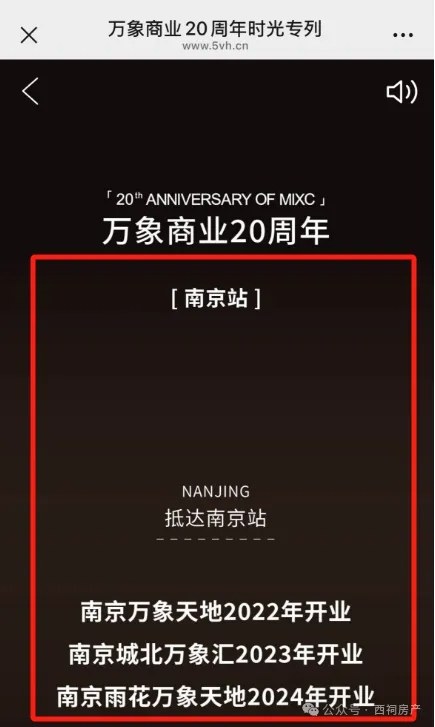 与此同时,西祠房产发现,据近期华润万象生活发布的万象商业20周年回顾显示,南京区域已经没有“桥北万象汇”的名字。