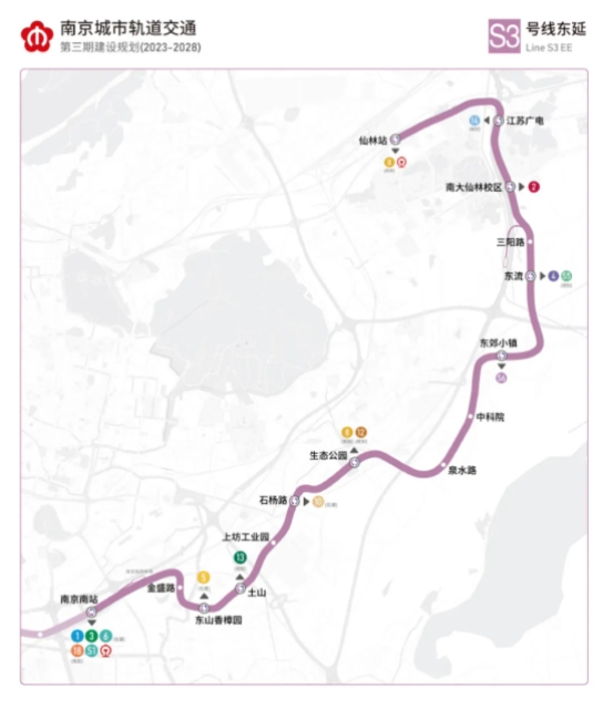 “城市轨道交通属于重大基础设施工程,其建设难度大,工期长且投资巨大,须严格按照国家基本建设程序,综合城市发展及财力等情况,排定建设时序,报经国家及省、市相关部门批准后有序开展建设。根据我市轨道交通线网规划,地铁8号线北起十月广场站,南至中华门站,主要提供麒麟门、仙林、新尧等外围地区与主城区之间的快速联系。为进一步增加紫金山东部地区轨道覆盖,服务麒麟科技创新园、仙林大学城等科研组团,规划宁和S3线东延至仙林,宁和S3线是轨道线网中的市域快线,规划在生态公园站与8号线形成换乘,共同完善城市东部、南部轨道交通线网,满足市民的不同出行需求。
