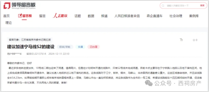 近日,有网友在人民网领导留言板上留言称:“ 最近多条地铁进度加快,10号线二期也迎来了洞通,值得高兴,但是在计划明年开通的线路中,只有S2号线未完成洞通,目前卡点主要存在于宁桥路入地段以及地下盾构区间,地上段完成度很高具备明年开通条件,建议加速入地段拆迁以地下盾构的推进。”