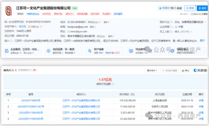 可一书店·仙林艺术中心由江苏可一文化产业集团股份有限公司建设开发。天眼查显示,江苏可一文化产业集团股份有限公司股权被冻结,已被列为被执行人、被限制高消费,陷入多起法律纠纷,被执行总金额为1.57亿元。
