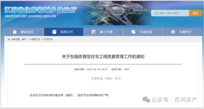 2月10日,江苏省住房和城乡建设厅发布《关于加强改善型住宅工程质量管理工作的通知》,文件明确提到:住房与城乡建设主管部门要以提升质量、功能、性能、服务为核心,从户型设计、空间优化、材料选用等方面,全面提升住宅性能品质。鼓励开展定制化户型、个性化室内装修设计服务。