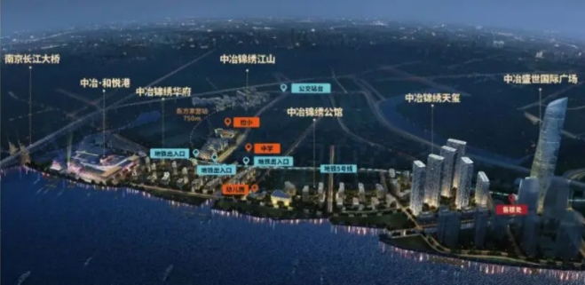 2010年、2012年:中冶以共256.54亿元摘得下关滨江商务区1、2、3号地。2014年开始:中冶拆分1号地块,证大、深业、龙湖、恒大等陆续入驻下关滨江。中冶对留下的3号地进行整体开发,打造了中冶盛世滨江,中冶盛世滨江体量约130万方,包含有: