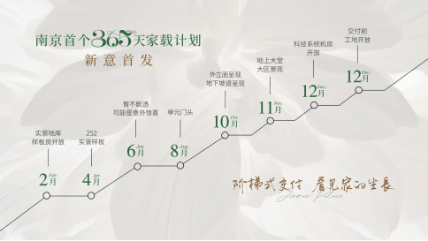 而今,秦淮金茂府传承极致兑现的初心,在「南京首个365天家载计划」的首发现场,提前一年制定了一份交付计划,细致到哪个月完成哪些进度、兑现到哪一步,都清楚明白地呈现、展示于业主面前。以“主动被监督的极致自信”,用南京首个“阶梯式交付兑现”,予业主家人十足的诚意与尊重,更让来自全国的470位城市顶层业主,提前看到了“家”的具象化生长,也让家人们看到了金茂府和业主家庭一同成长的决心——