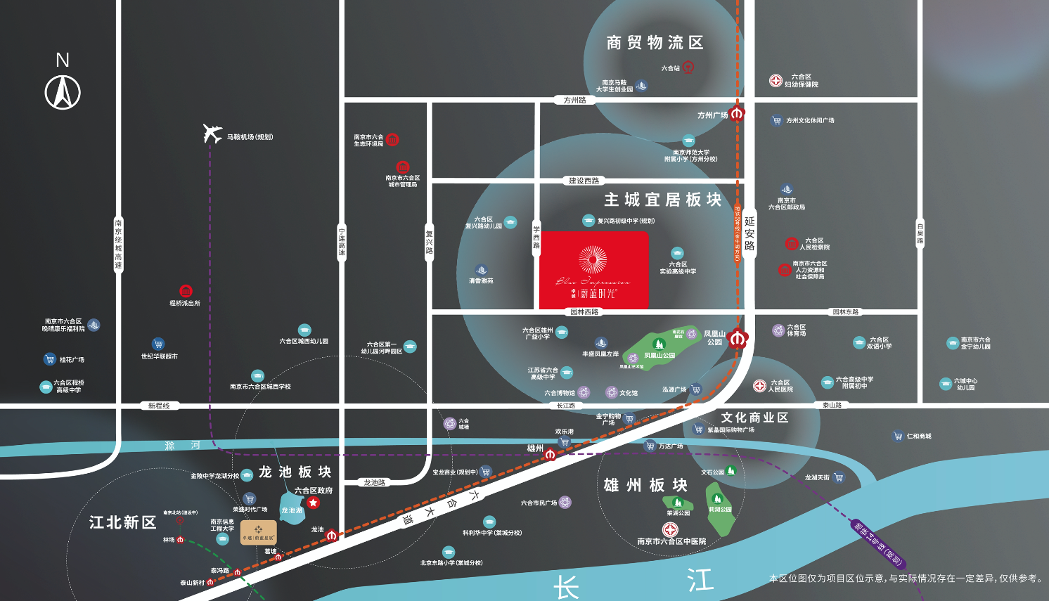 六合主城正核区位占据,于拥纳千年风雅的棠城滁河岸边,打造10栋全11F纯粹花园洋房住区。坐享“三片、一轴、三核”的整体空间结构规划红利,感受城市醇熟人居,一线地铁三大干道,直距地铁S8号线凤凰山公园站仅900米;北邻规划教育用地,南邻六合区雄州广益小学,小初高教育一站式近享。自建约1万方邻里社区商业,欢乐港、万达广场、宝龙商业(规划中)三大商综辐射;六合区人民医院、妇幼保健院等优质医疗时刻护航健康。