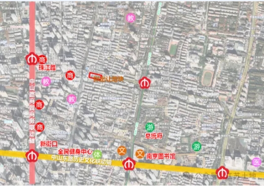 地块位于老城核心地段,紧邻新世界中心,距德基广场不足1公里,步行5分钟即可到达1912街区和D9街区,公共生活配套十分成熟。地块北侧一路之隔为南师附小珠江路校区(据此前的地块招商推介材料,项目有望被划入施教区),南侧为洪武北路小学,西侧临近人民中学,东侧距玄武外国语学校约1.5公里,教育资源十分优越;周边有东大、南大等高校和市文化馆、南京图书馆、国立美术馆旧址等文化场所,人文底蕴深厚。