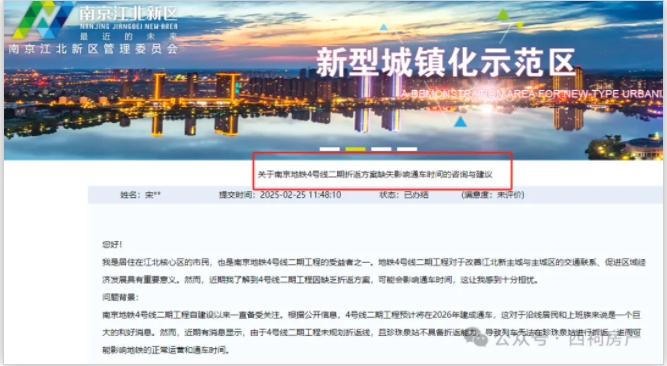2月25日,有网友留言给官方:建议地铁建设部门尽快研究并补充4号线二期的折返方案,确保地铁能够按时通车并安全运营。