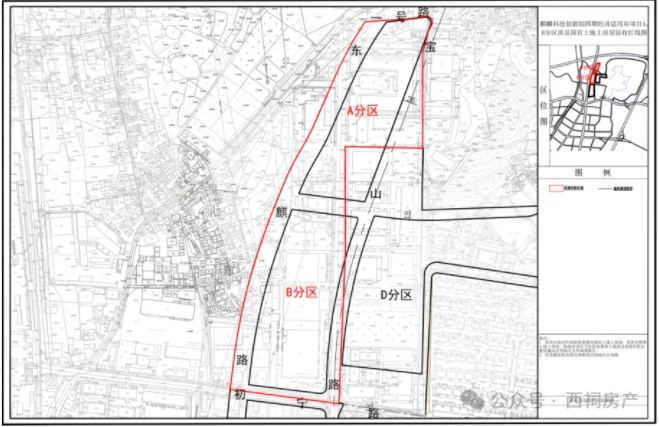 2022-2024年间,官方陆续发布了麒麟科技创新园四期经济适用房项目C、D、A、B分区征收公告。