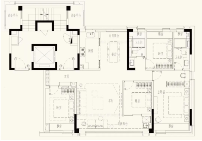 沁百合容积率仅1.01,规划了16栋住宅,总高4-7层,主力户型为124㎡和143㎡,另外还有176、198㎡顶跃户型,共计278套,一梯两户设计。公区部分,小区设置了会所+下沉式庭院+架空层,具备丰富的公共功能性配套。