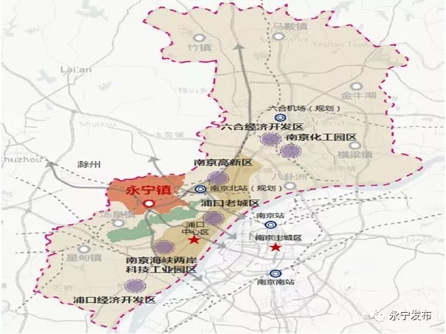 永宁是南京市江北新区西向唯一门户小镇,是南京距离主城最近的现代农业街道,南京距周边地级市市区最近的街道,滁州东向战略的前沿对接地带。永宁仅距离高铁南京北站5公里,境内规划设立宁滁城际站点、轨道电车站点、江北新区唯一的铁路编组站。