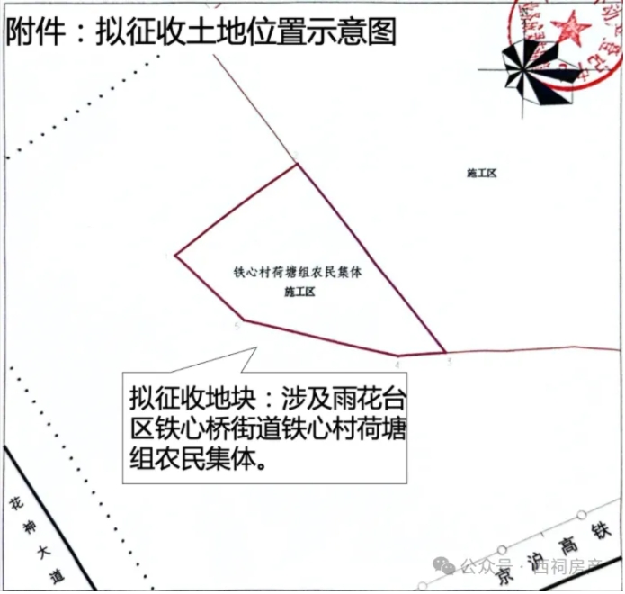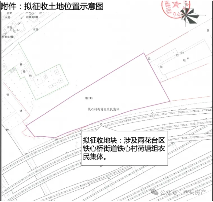 将拟订的南京雨铁绿地公园(道路)项目:本次拟征收土地位于雨花台区铁心桥街道铁心村荷塘组农民集体范围内。拟征收铁心村荷塘组集体所有土地0.0088公顷(0.132亩)。