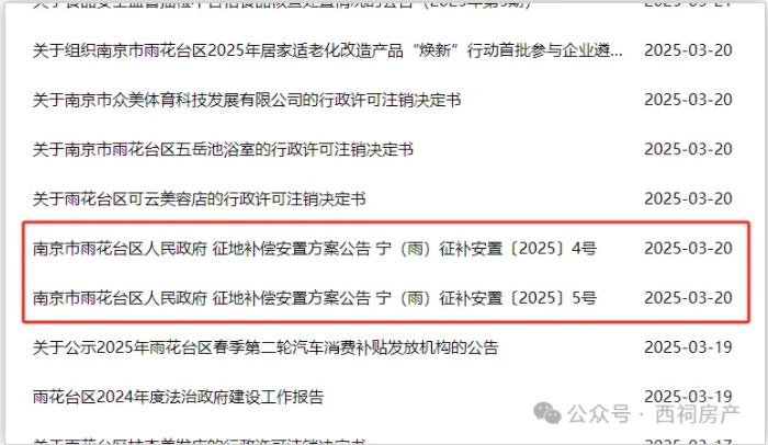 3月20日,南京市雨花台区人民政府 征地补偿安置方案公告 宁(雨)征补安置〔2025〕4号、5号公告发布,南京雨铁绿地公园项目补偿安置方案出炉,拟征收总面积约11.493亩。