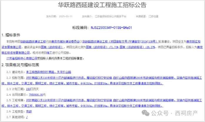 近日,华跃路西延建设工程施工招标公告、华跃路西延建设工程房屋拆除及建筑垃圾清运项目竞争性磋商公告正式发布!华跃路西延建设工程起规划红燕路,东至红山路,计划工期为150日历天,合同估算价为7950000元。