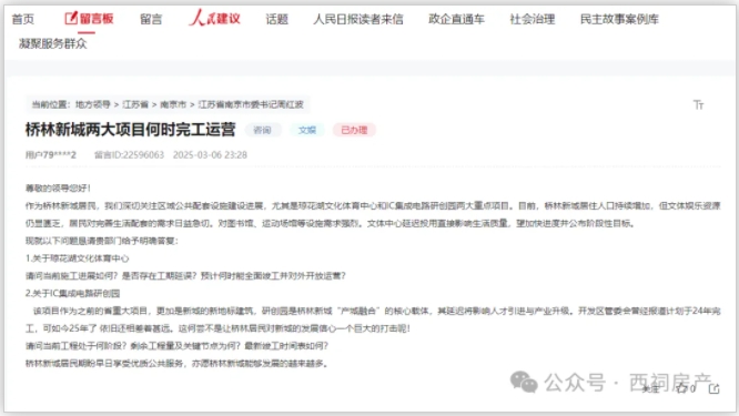 近日,有网友在人民网留言板上咨询桥林新城两大项目何时完工运营,这位网友表示:桥林居民对图书馆、运动场馆等设施需求强烈。