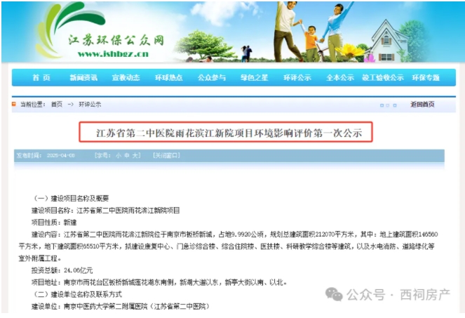 刚刚,板桥三甲医院——江苏省第二中医院雨花滨江新院迎来重磅进展,正在进行环评公示!