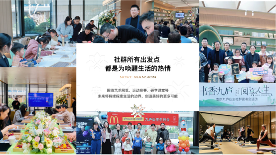“庐CLUB”社群,涵盖艺文、美学、亲子、运动四⼤维度社群IP,覆盖亲⼦成长、⽣活⽅式、户外健身、社区公益、圈层社交等不同领域,实现全⽅位覆盖九庐业主对于⽣活、社交、运动等需求,提高生活的获得感,也让每个人的热爱,能够获得更好的表达。