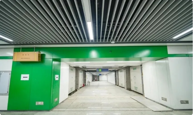 从曝光的实景图来看,上秦淮西站装饰装修延续了3号线的主题风格,采用代表色“薄绿色”,站厅和站台、出入口等位置,都有醒目的绿色线条。
